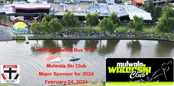 Β  Benalla Saints Sports Club bus trip to Mulwala Ski ClubΒ  one of our major sponsors in 2024 Come along for a great day and welcome in the 2024 season. Mulwala Water Ski Club Bus Trip Saturday 24th February Buses leave from the Saints Clubrooms at 1pm - Return approx 11pm $10 early bird (before Feb 12) $20 per headΒ  Limited seats available, please RSVP by Friday 16th February.